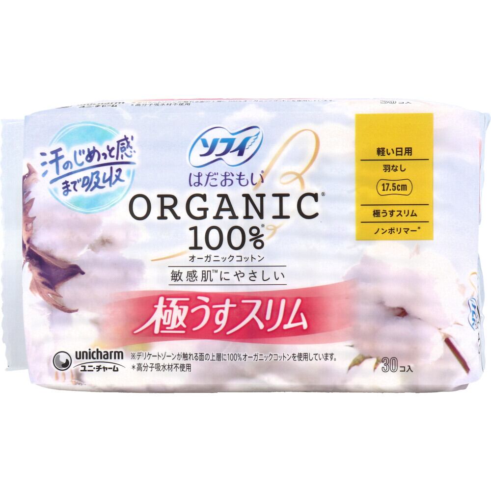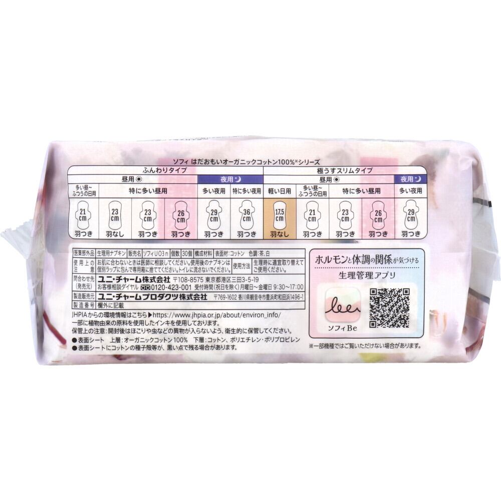 ソフィ はだおもい オーガニックコットン100% 極うすスリム 軽い日用 羽なし 17.5cm 30個入