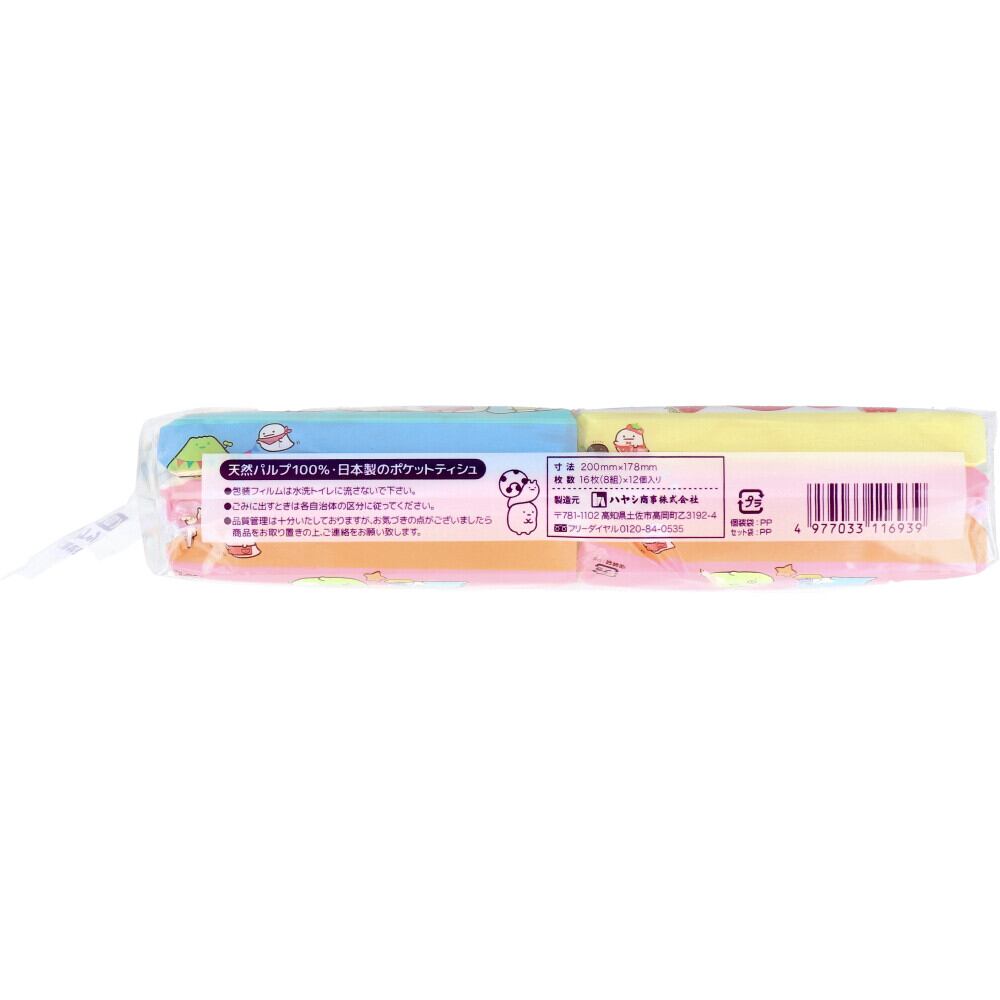 水に流せるポケットティシュ すみっコぐらし 全8柄ランダムアソート 16枚(8組)×12個入