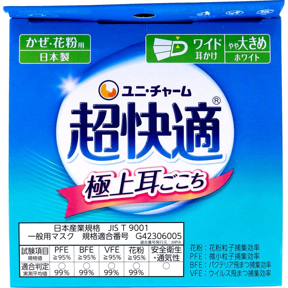 超快適マスク 極上耳ごこち かぜ・花粉用 ホワイト やや大きめサイズ 30枚入