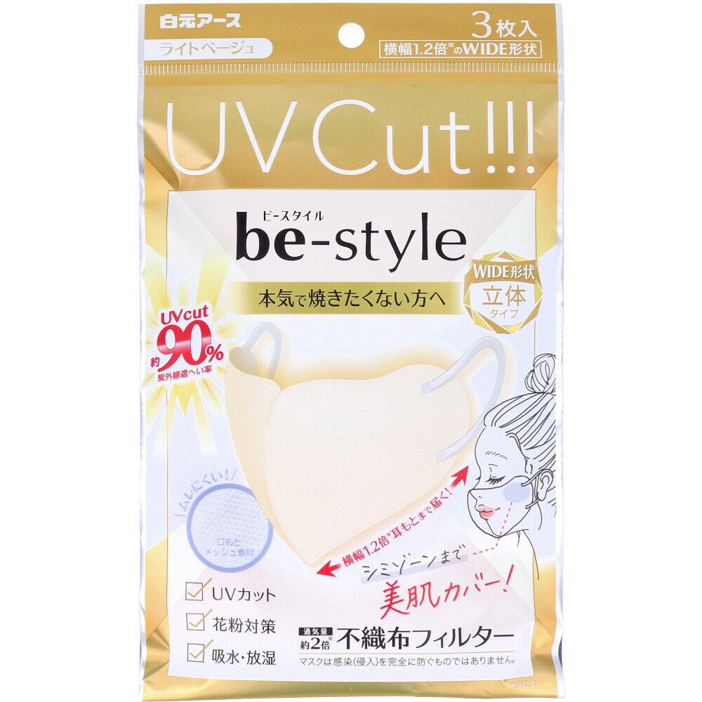 ビースタイル UVカットマスク ワイド立体タイプ ふつうサイズ ライトベージュ 3枚入