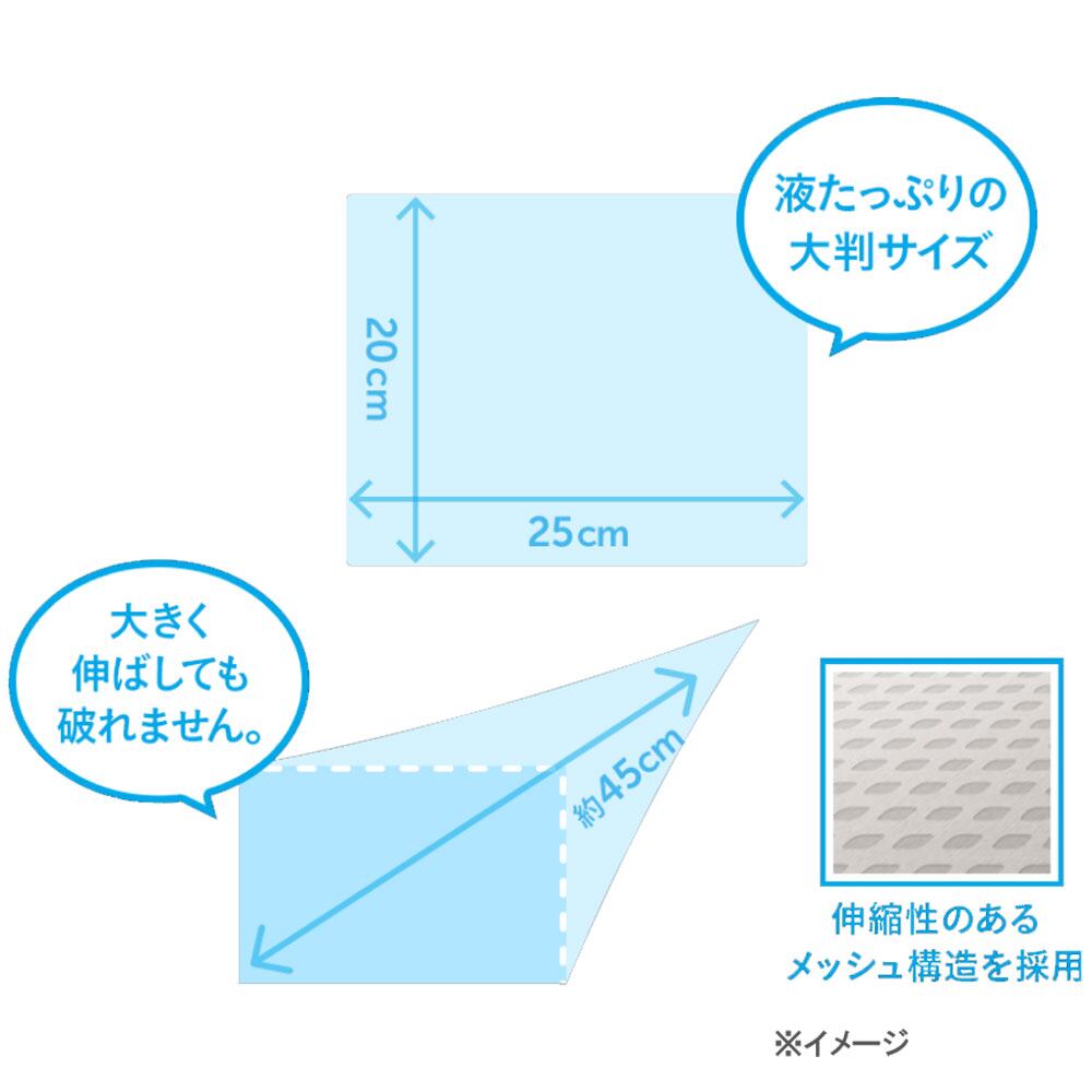 ●1枚で顔も身体も全身拭ける、大判サイズのフェイス&ボディシート