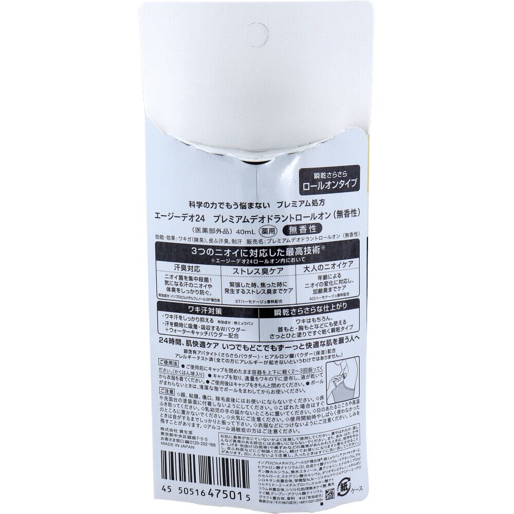 エージーデオ24 プレミアムデオドラントロールオン 無香性 40mL