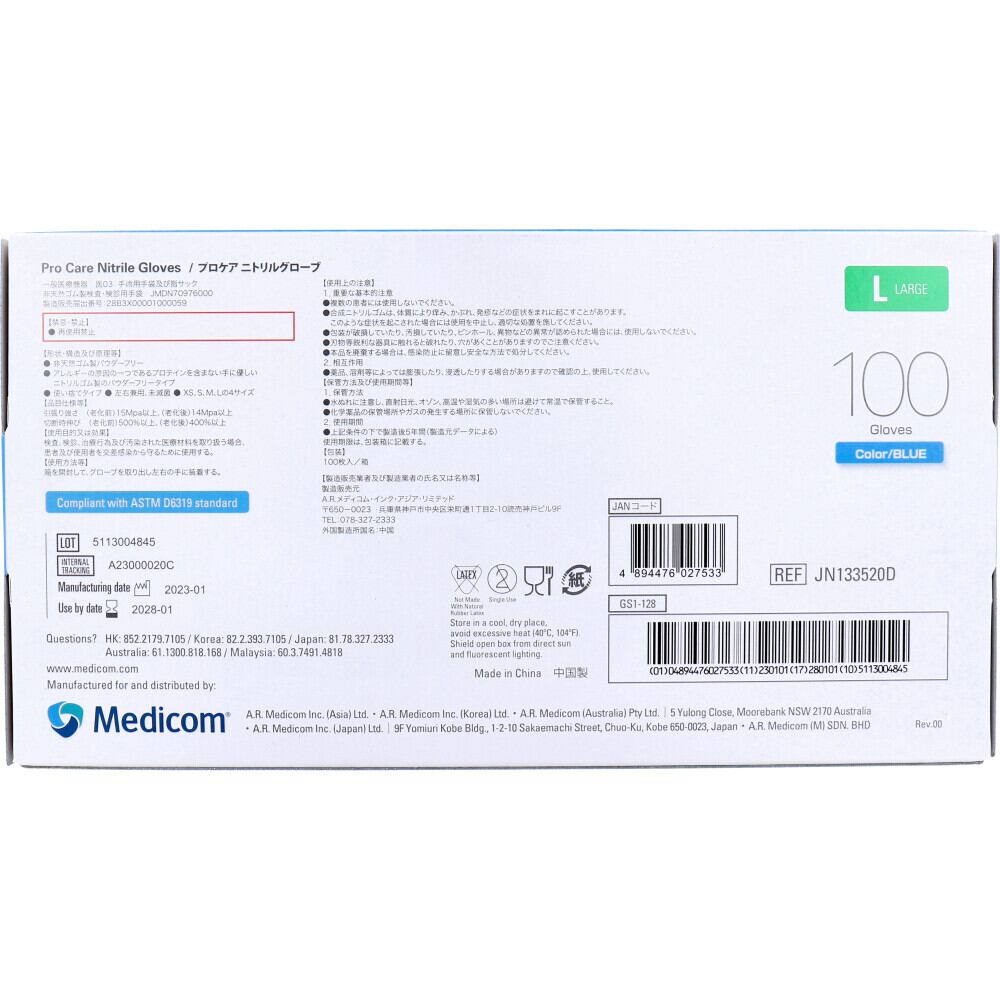 【業務用】プロケア ニトリルグローブ ブルー Lサイズ 100枚入