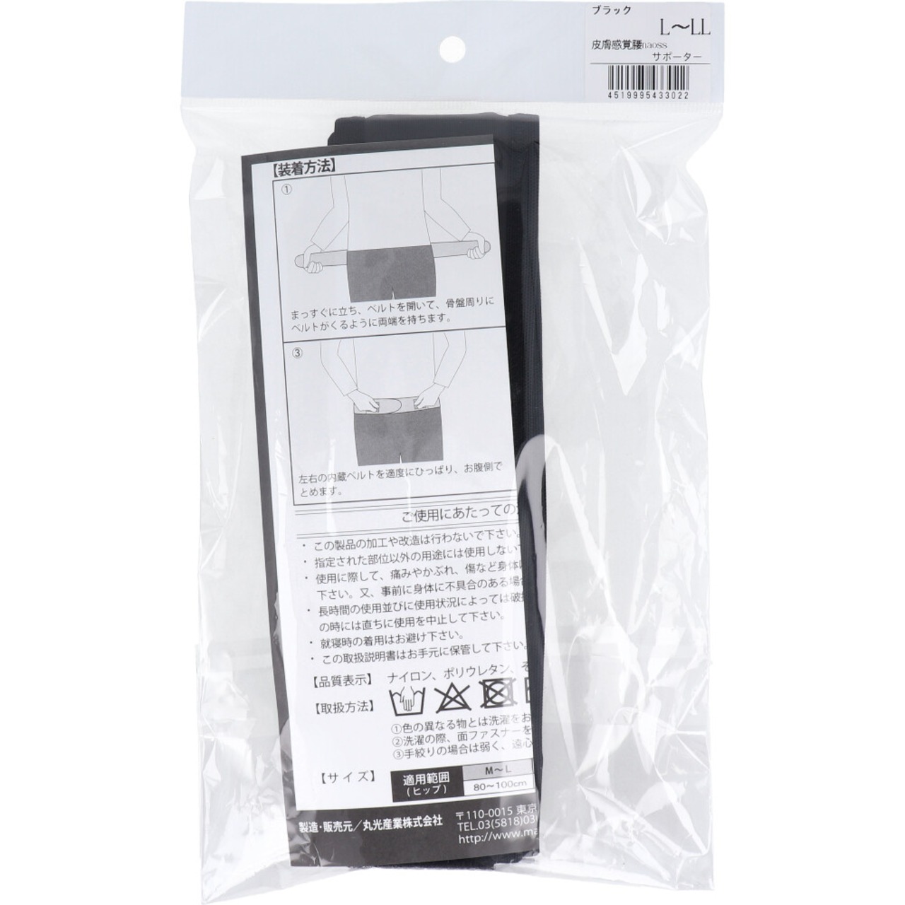 皮膚感覚 腰naossサポーター ブラック L-LL