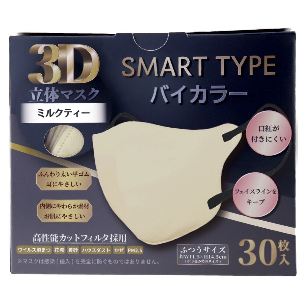 3D立体マスク スマートタイプ バイカラー ミルクティー ふつうサイズ 30枚入