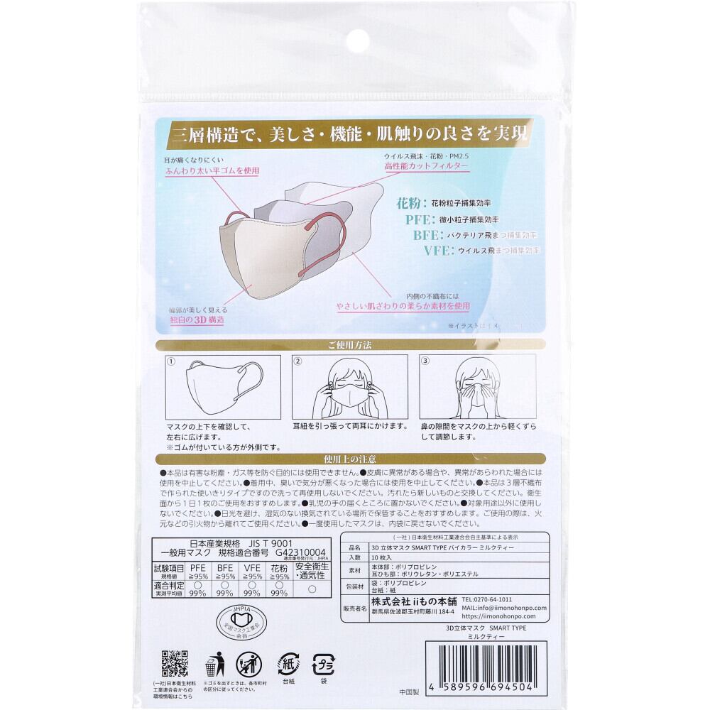 3D立体マスク スマートタイプ バイカラー ミルクティー ふつうサイズ 10枚入