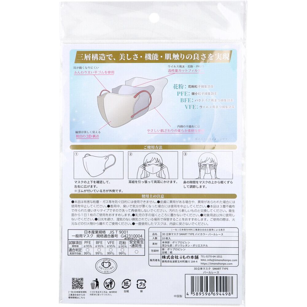 3D立体マスク スマートタイプ バイカラー パールレース ふつうサイズ 10枚入