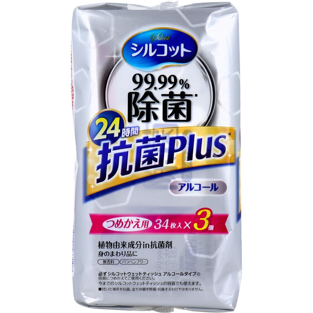 シルコット 99.99%除菌 抗菌Plus ウェットティッシュ アルコールタイプ 詰替用 34枚入×3個パック