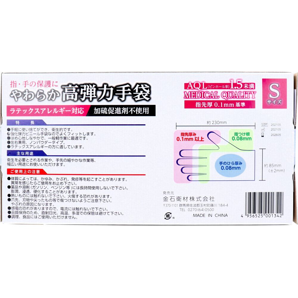 やわらか高弾力手袋 ビニール素材 ノンパウダー Sサイズ 100枚入