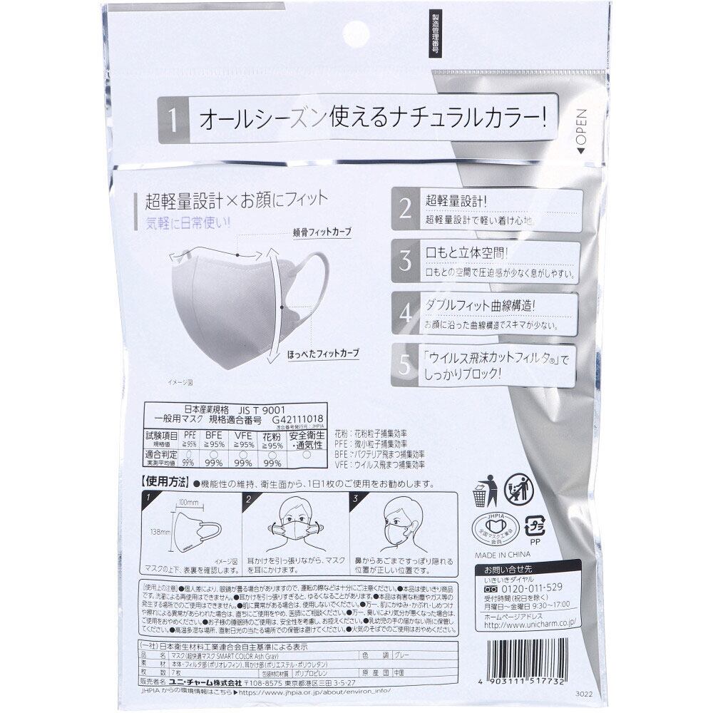 超快適マスク スマートカラー(SMART COLOR) アッシュグレー ふつうサイズ 7枚入