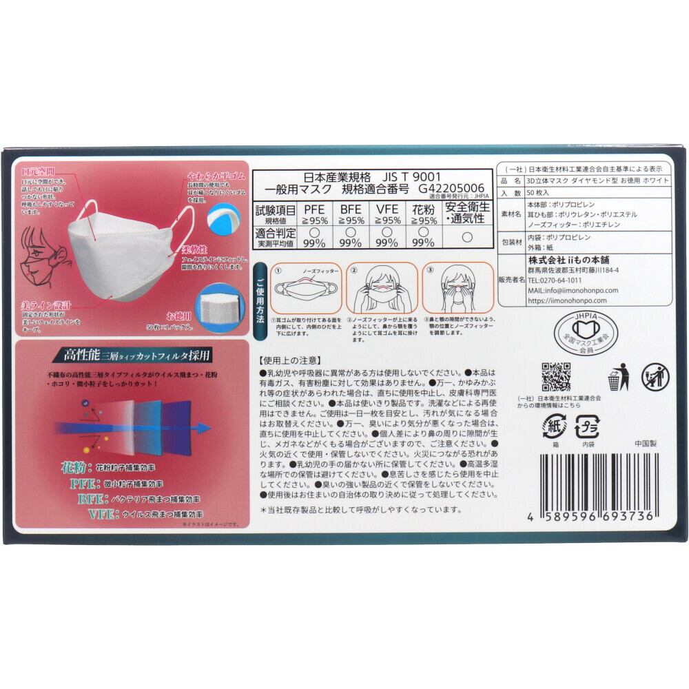 3D立体マスク ダイヤモンド型 お徳用 ホワイト