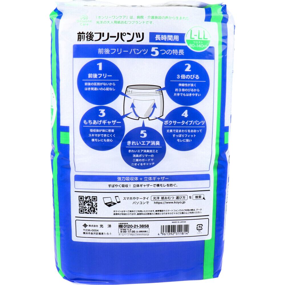 オンリーワンケア 前後フリーパンツ 長時間用 L-LLサイズ 16枚入