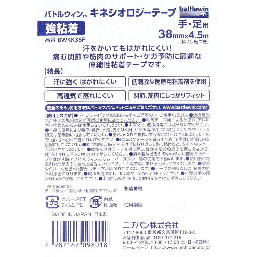 バトルウィンTM キネシオロジーテープ 強粘着 BWKK38F 38mm×4.5m 手・足用 1巻入