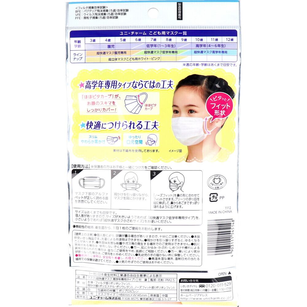 超快適マスク かぜ・花粉用 高学年専用タイプ 5枚入