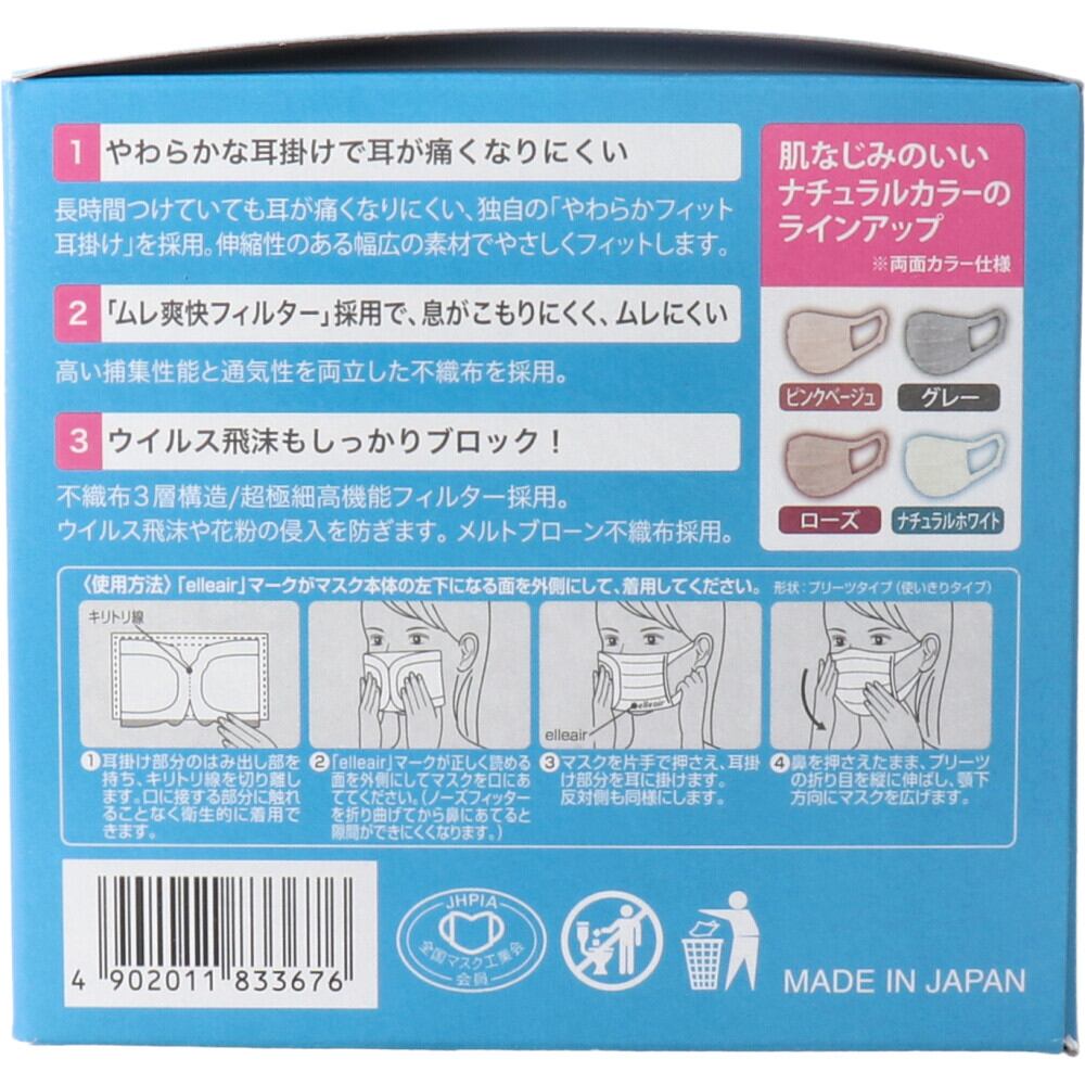 ・「elleair」マークがマスク本体の左下になる面を外側にして、着用してください。(形状:プリーツタイプ 使いきりタイプ)