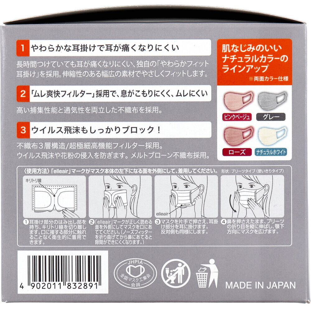 ・「elleair」マークがマスク本体の左下になる面を外側にして、着用してください。(形状:プリーツタイプ 使いきりタイプ)