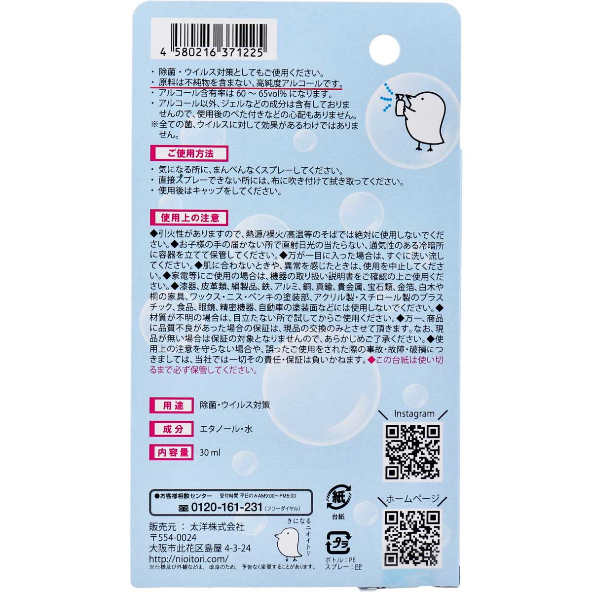 除菌・ウイルス対策用 きになるニオイトリ ぷらす アルコール除菌スプレー 携帯用 30mL