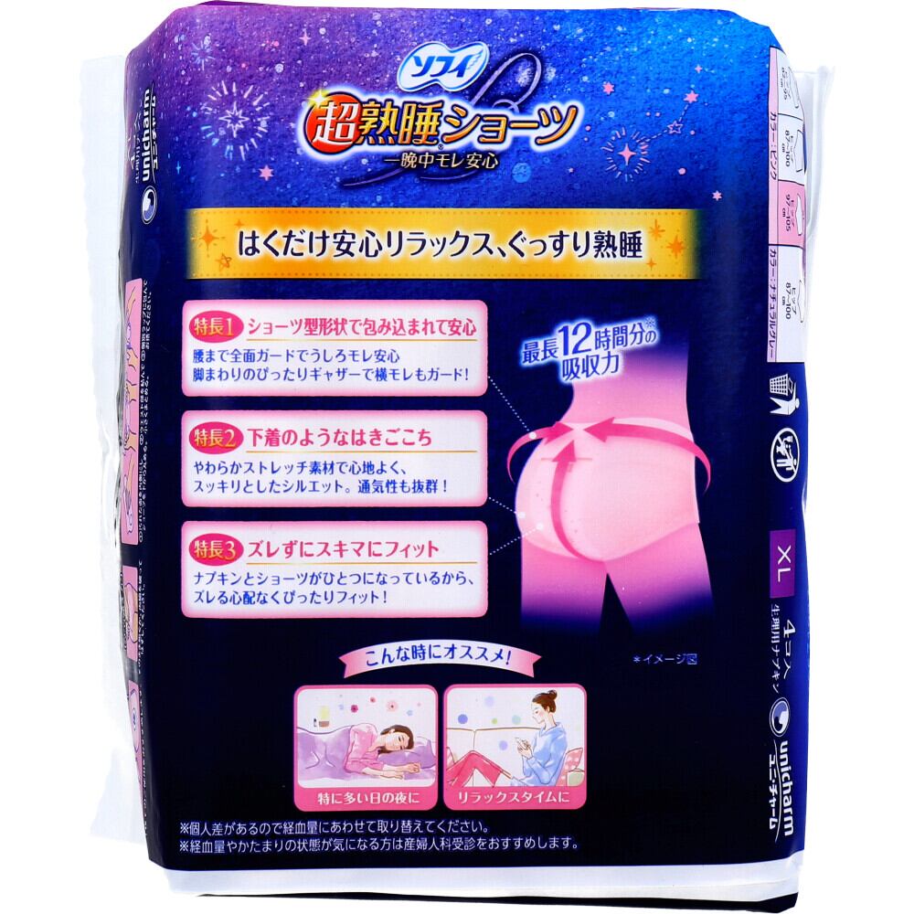 ソフィ 超熟睡ショーツ ショーツ型ナプキン 特に多い夜用 XLサイズ 4個入