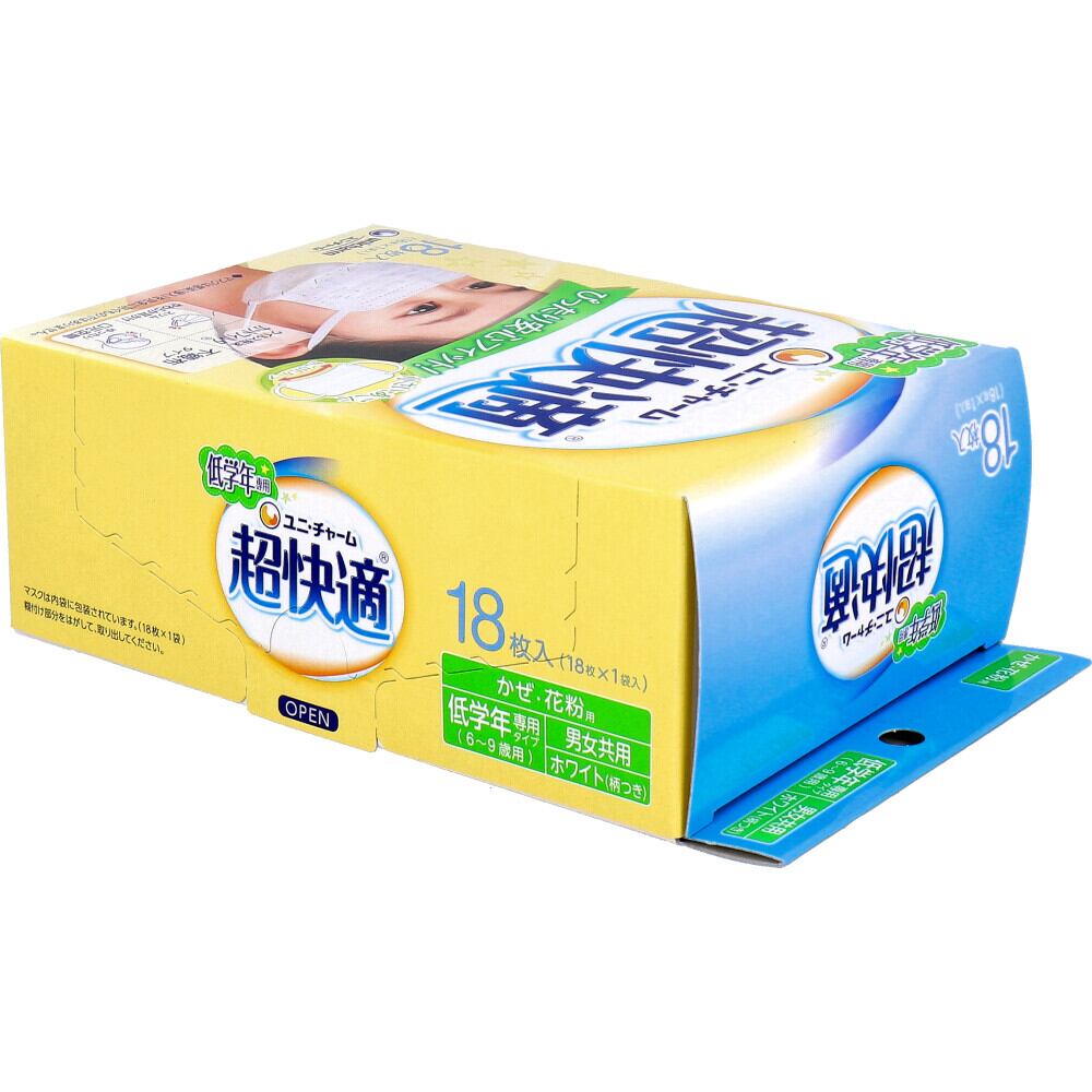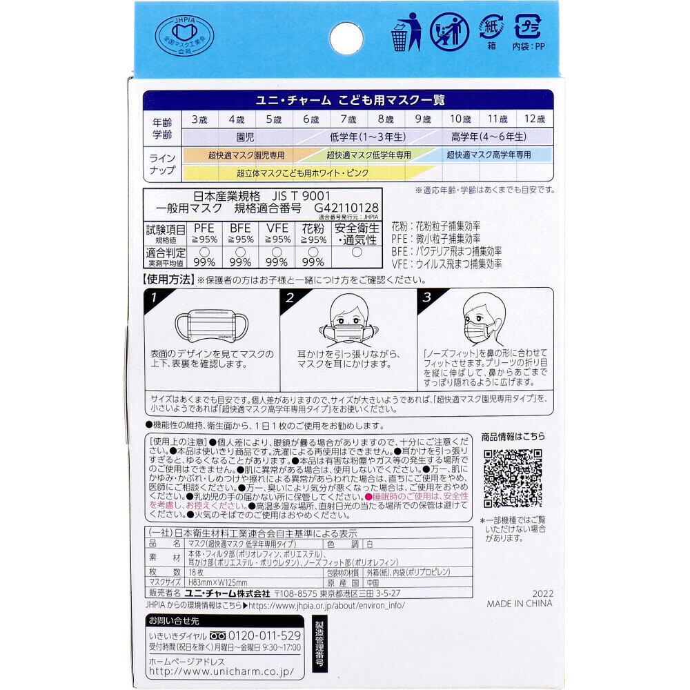 超快適マスク かぜ・花粉用 低学年専用タイプ ホワイト柄つき 18枚入