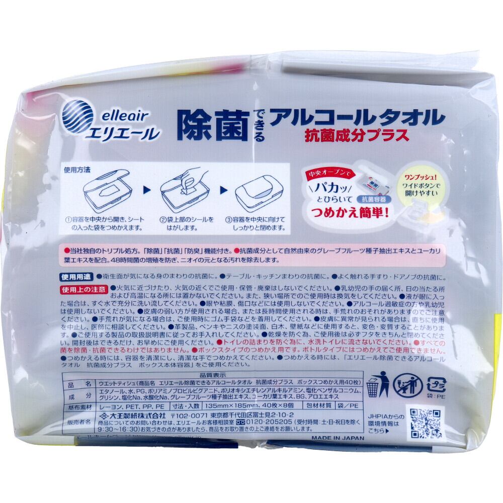 エリエール 除菌できるアルコールタオル 抗菌成分+ ボックス詰替 40枚×8個パック