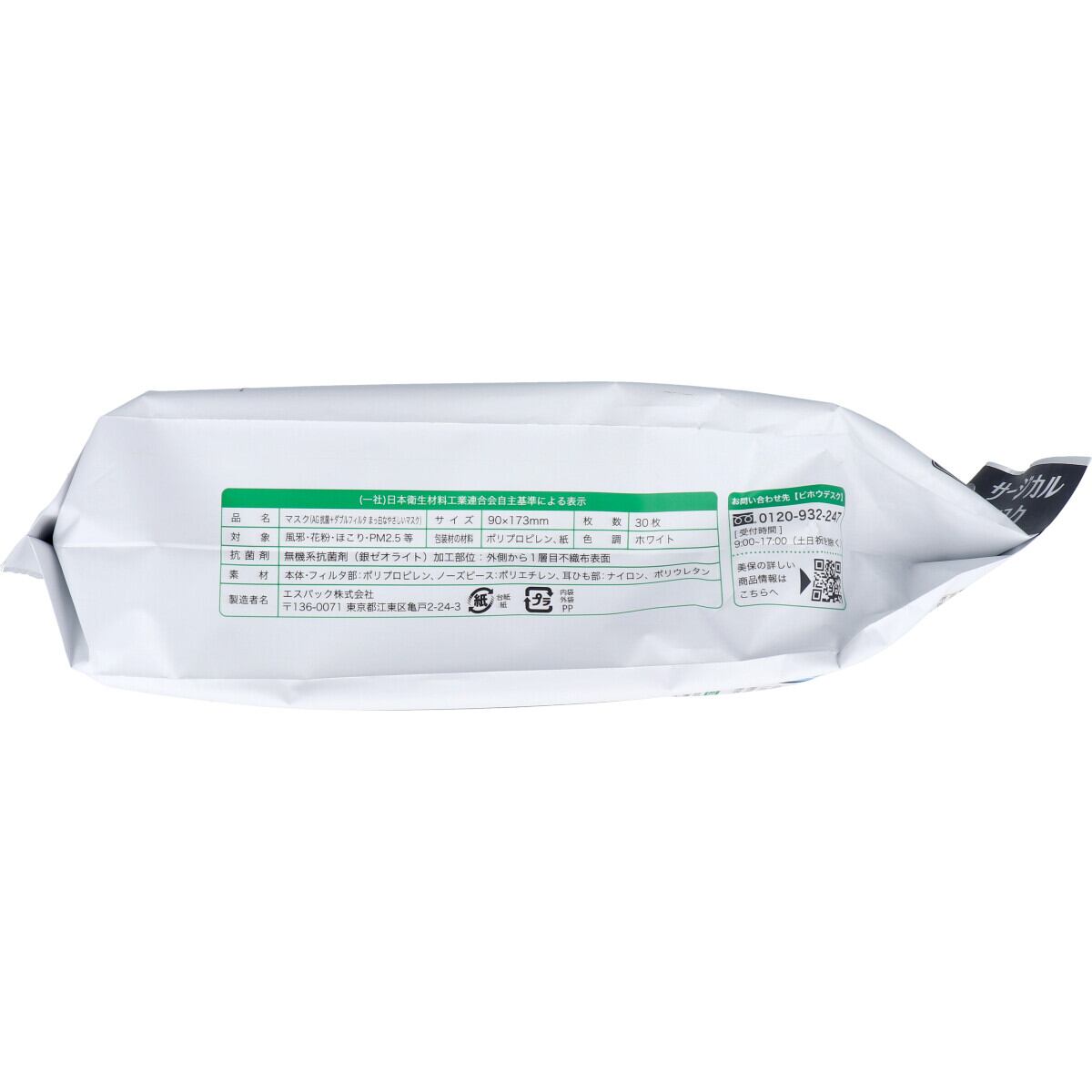 AG抗菌+ダブルフィルタ まっ白なやさしいマスク サージカルマスク 個包装 30枚入