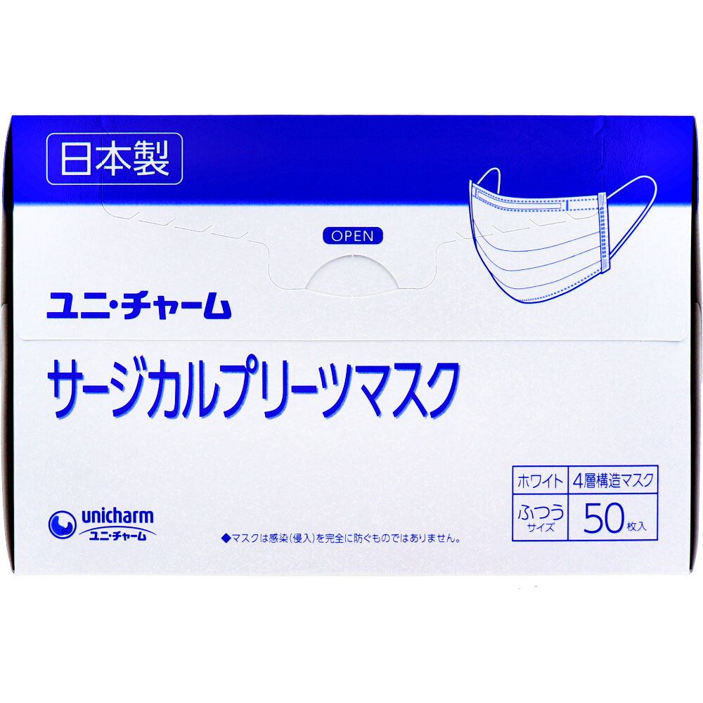 ユニ・チャーム サージカルプリーツマスク 4層構造 ふつうサイズ ホワイト 50枚入