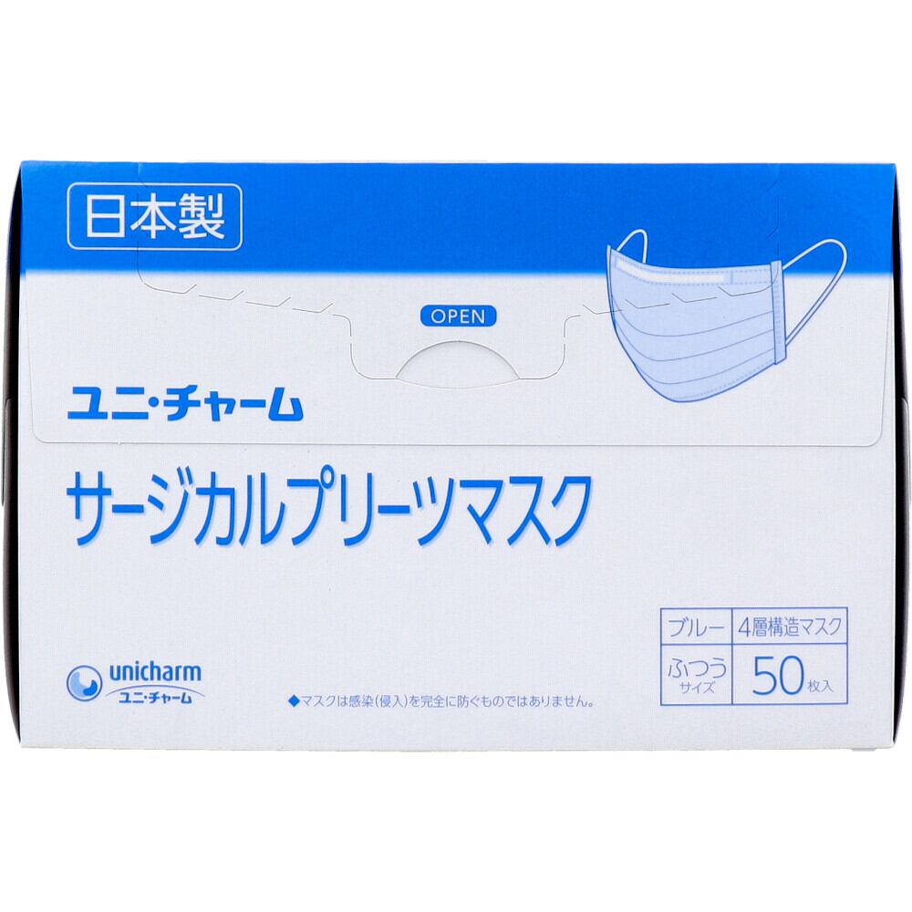 ユニ・チャーム サージカルプリーツマスク 4層構造マスク ふつうサイズ ブルー 50枚入