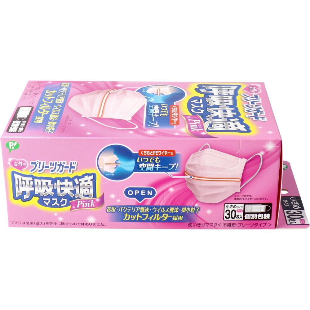 プリーツガード 呼吸快適マスク 個別包装 小さめサイズ ピンク 30枚入