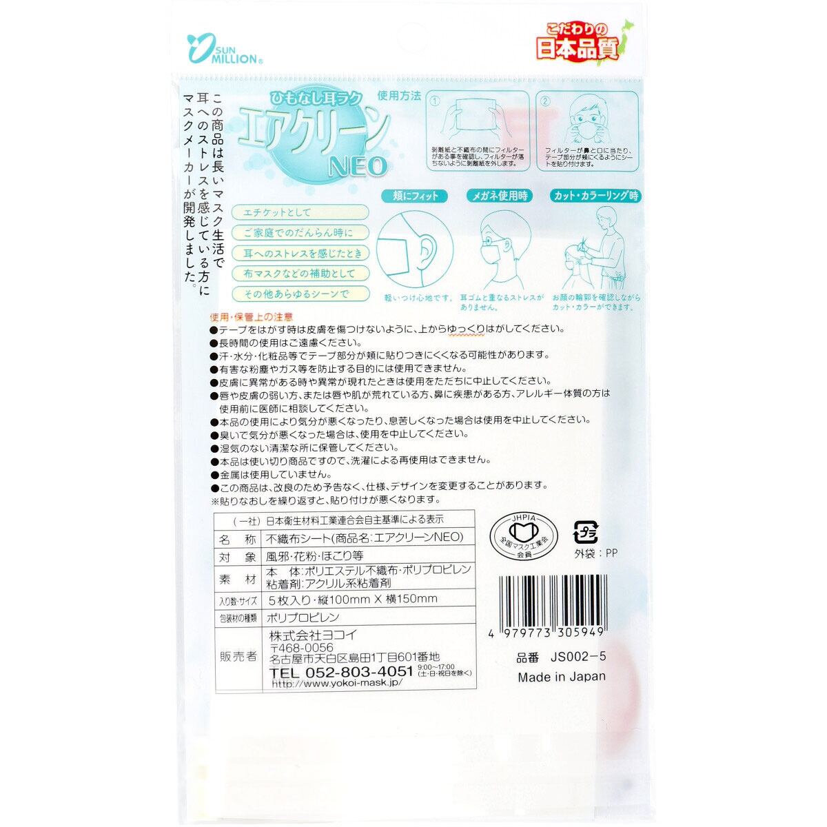 サンミリオン ひもなし耳ラク エアクリーンNEO 使い切りタイプ 5枚入
