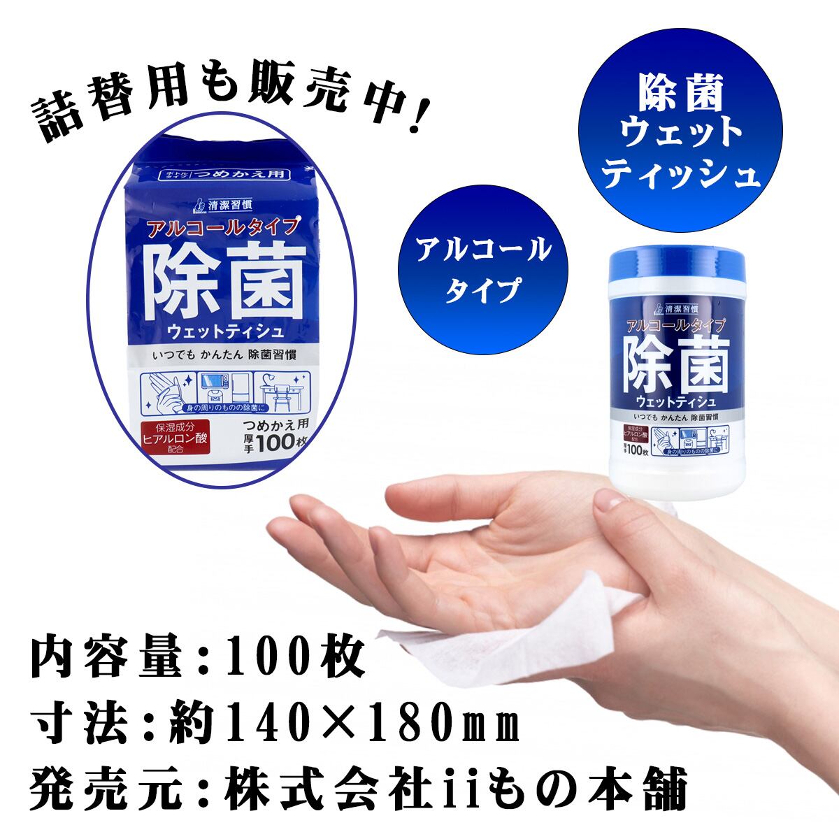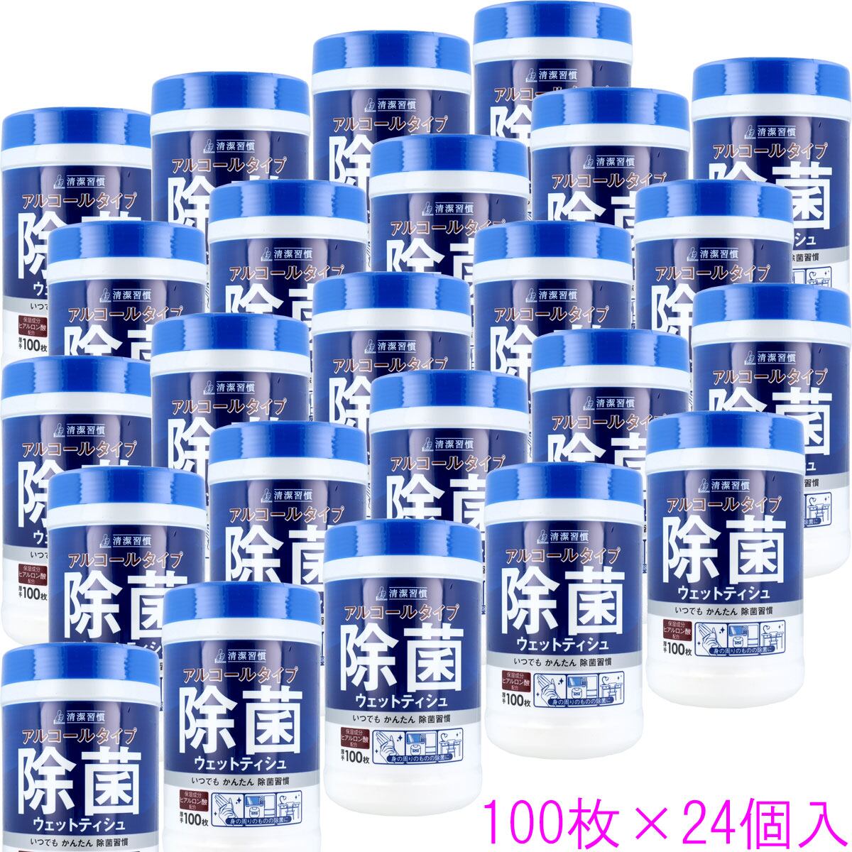清潔習慣 アルコールタイプ 除菌ウェットティシュ ボトル本体 100枚×24個セット