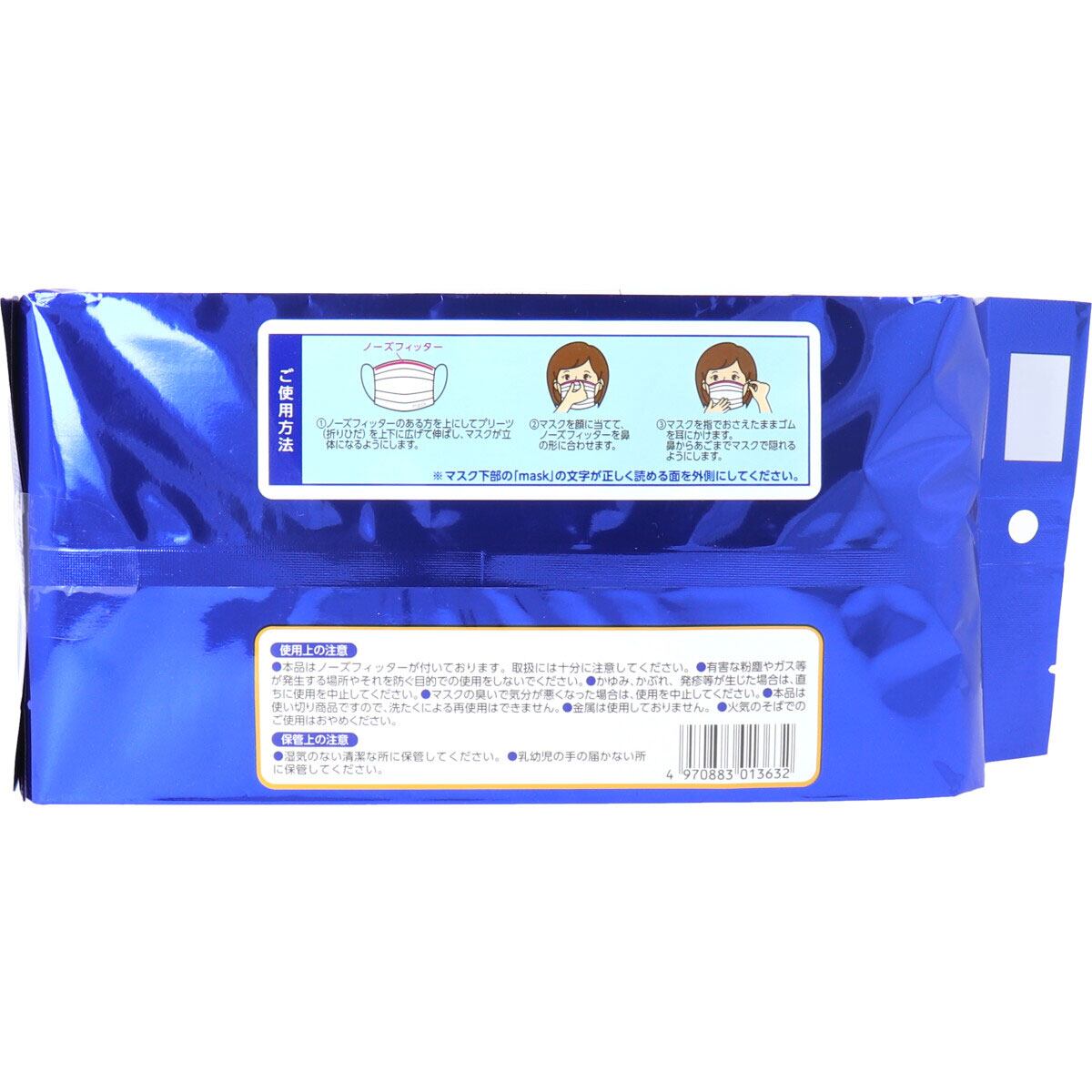 ※マスクの下部の「mask」の文字が正しく読める面を外側にしてください。