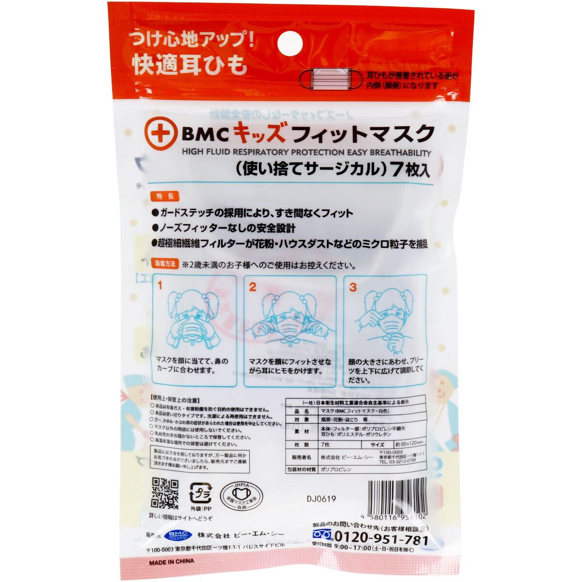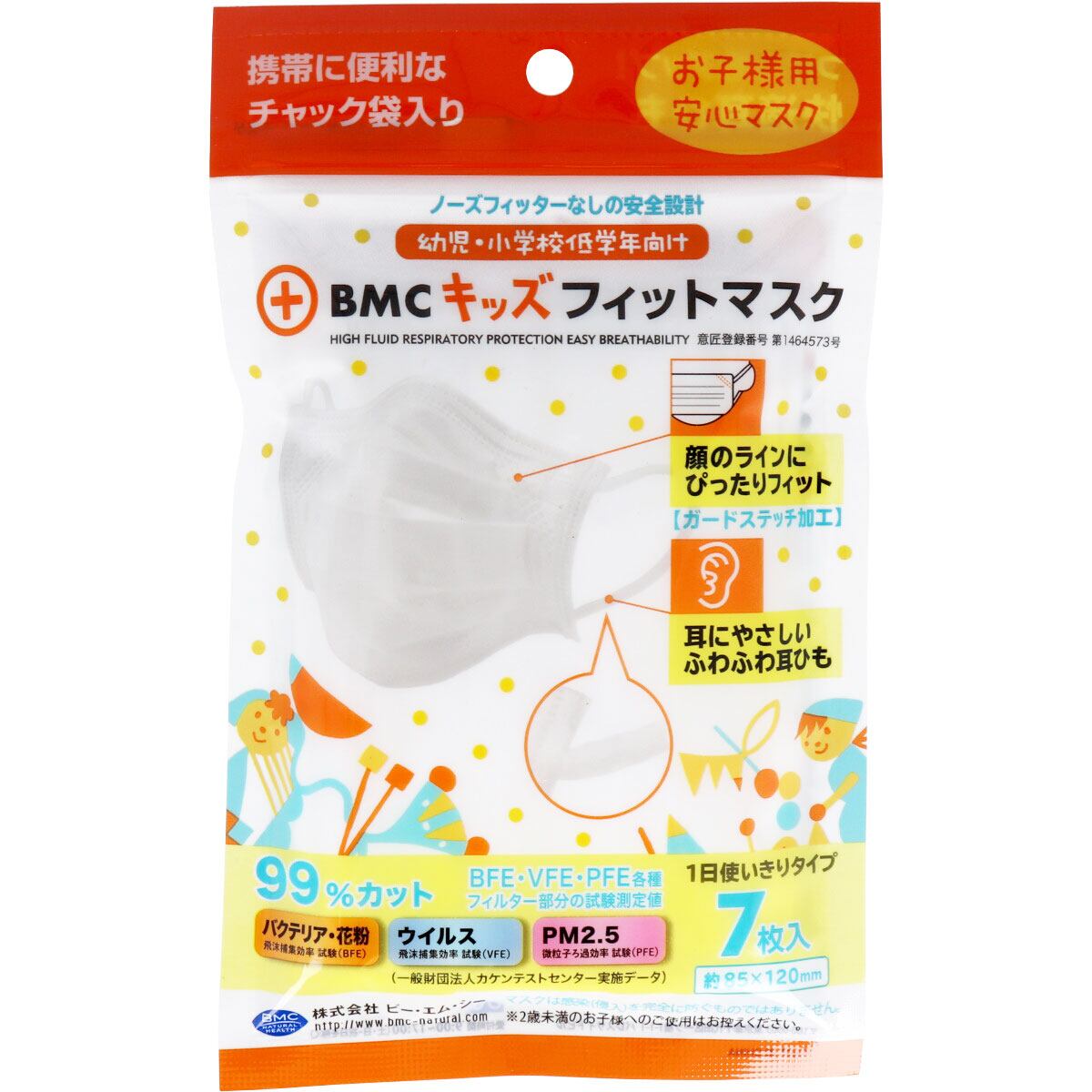 BMC キッズフィットマスク 使い捨てサージカルマスク 幼児・小学校低学年向け 7枚入