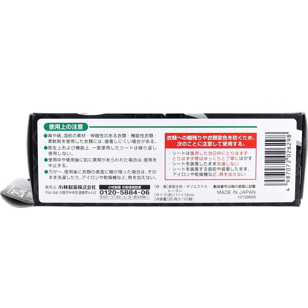 衣類に貼って、汗ジミ・黄ばみを防ぐ。