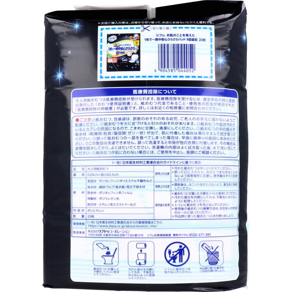 リフレ お肌のことを考えた 1枚で一晩中安心さらさらパッド 男女兼用 9回吸収 20枚入