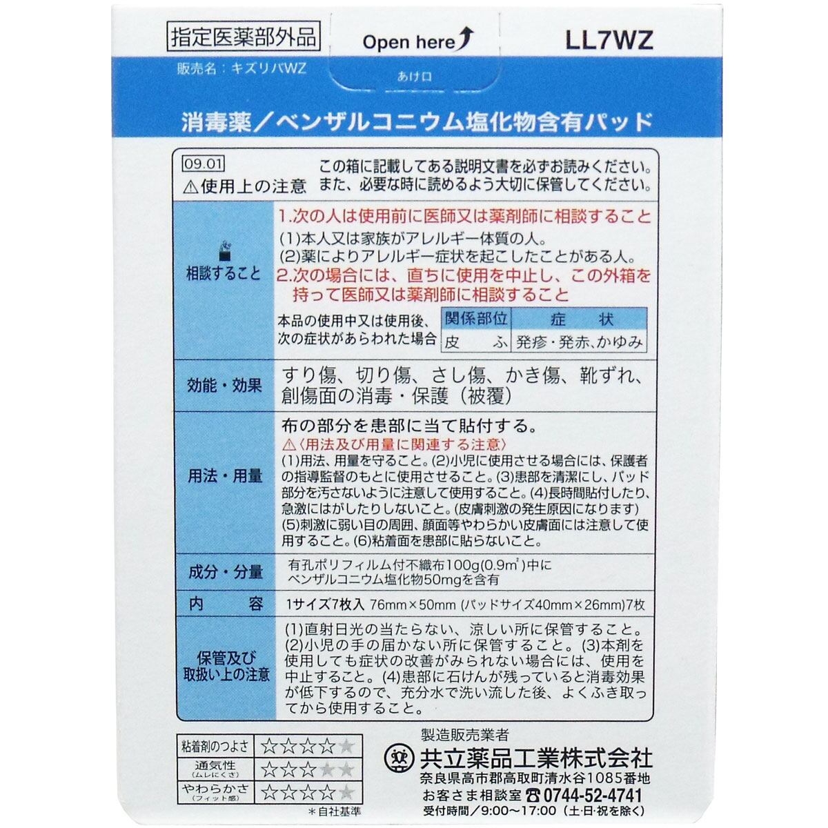有弘ポリフィルム付不織布100g(0.9平方メートル)中にベンザルコニウム塩化物0.05%を含有。