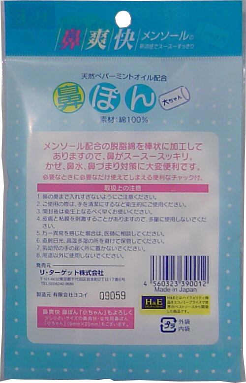 メンソール配合の脱脂綿を棒状に加工してあります。