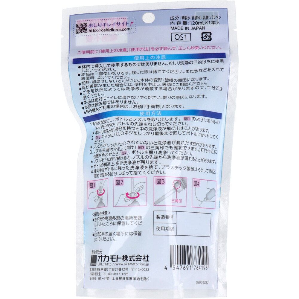 (3).ノズル先端の穴を上に向け肛門付近に位置を合わせたら、ボトルを握り洗浄してください。