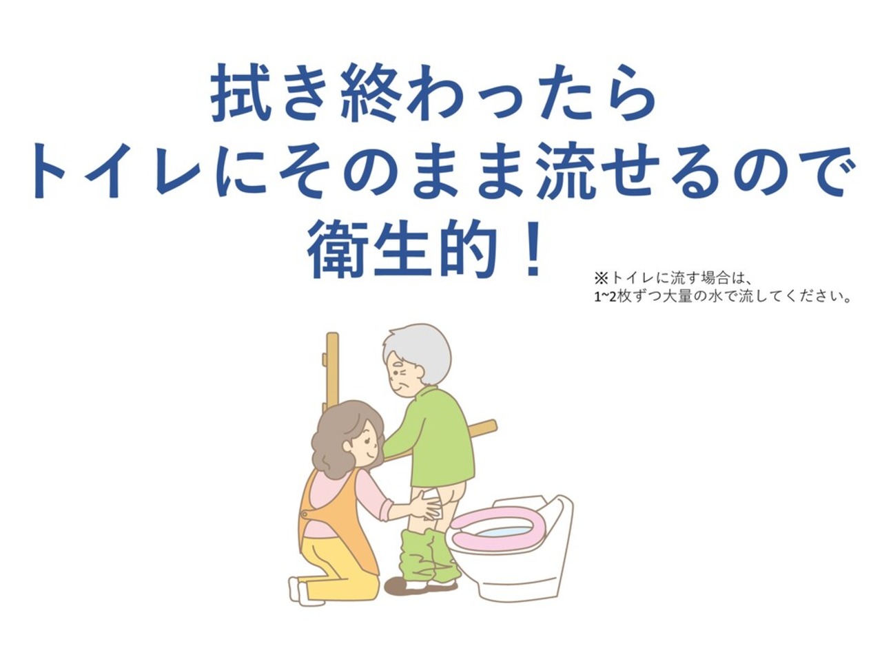 ●水分散性が高いティシュなので、使用後は便と一緒にそのままトイレに流せます。
