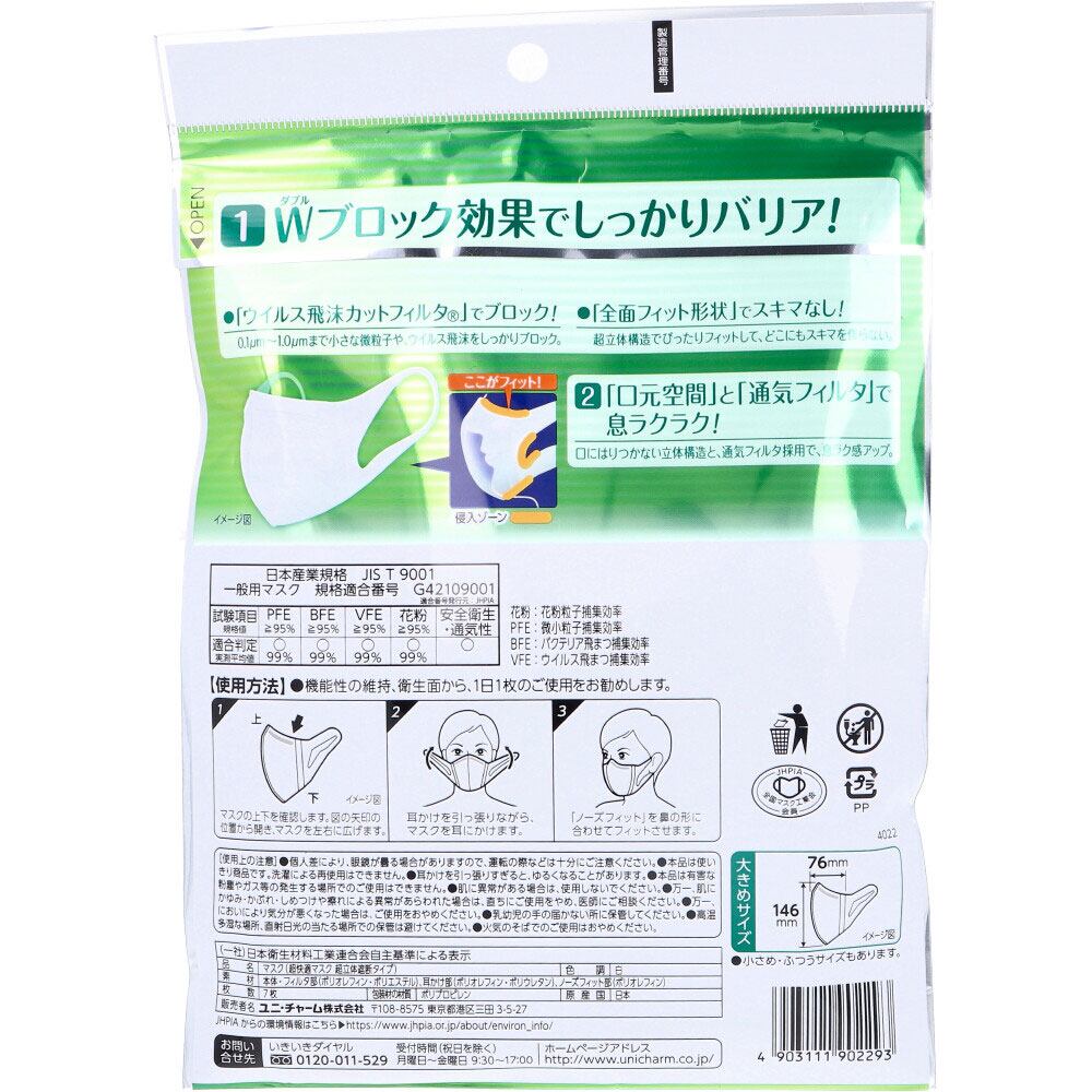 超立体マスク かぜ・花粉用 大きめサイズ 7枚入