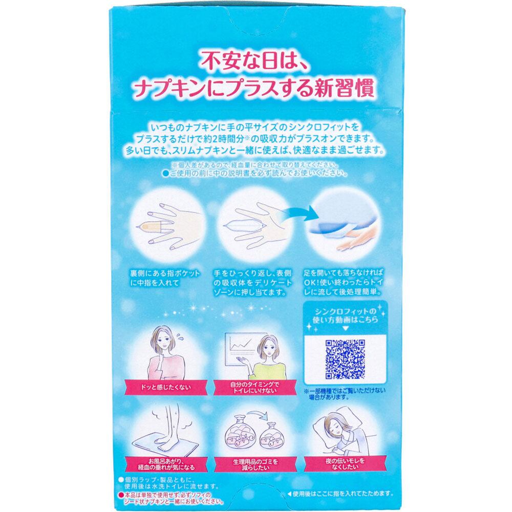 ●いつものナプキンに手の平サイズのシンクロフィットをプラスするだけで約2時間分の吸収力がプラスオンできます。