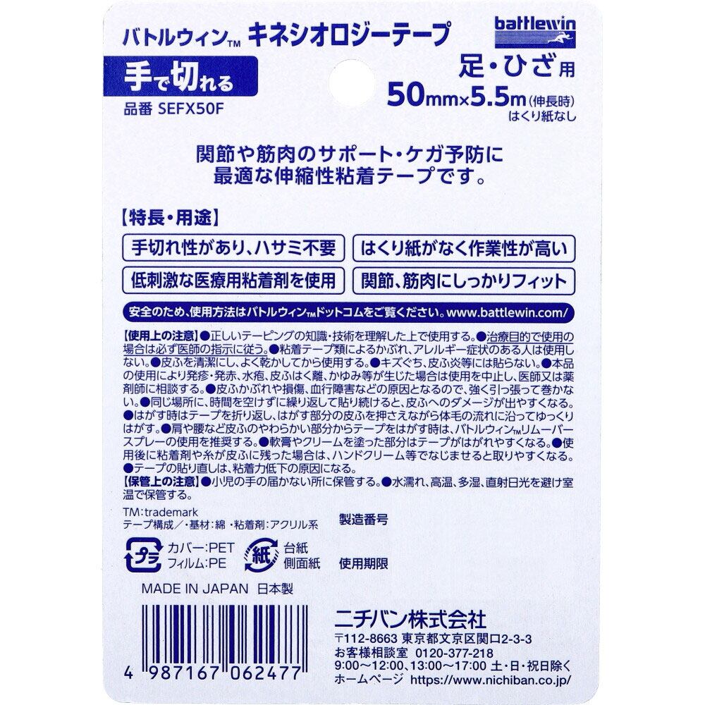 バトルウィンTM キネシオロジーテープ SEFX50F 50mm×5.5m(伸長時) 1巻入
