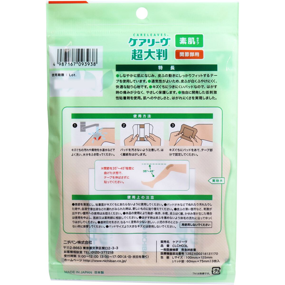 ケアリーヴ 超大判 素肌タイプ 関節部用 Lサイズ 3枚入 CLCHO3L