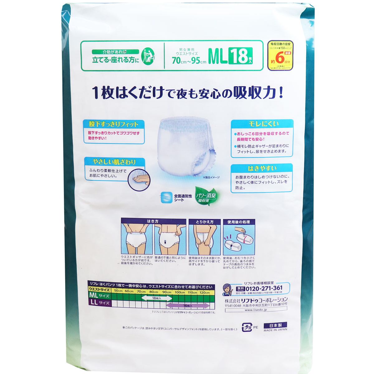 リフレ はくパンツ 1枚で一晩中安心 MLサイズ 18枚入