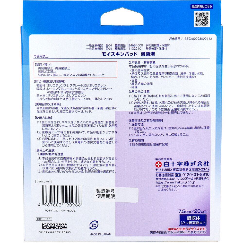 FCモイスキンパッド7520 Lサイズ 5枚入