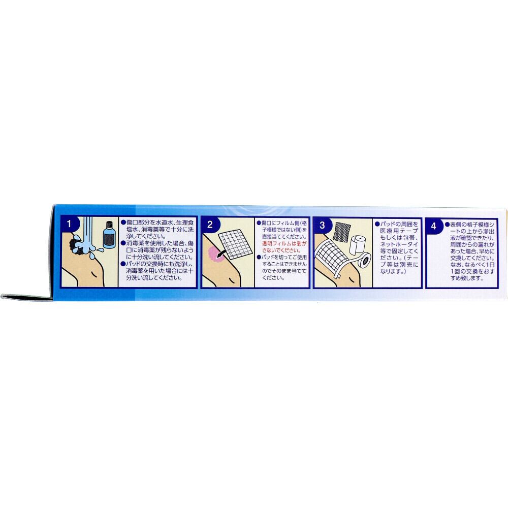 ※医療用テープもしくは包帯、ネットホータイ等で固定して下さい。軟膏などのご使用は、医師または薬剤師にご相談ください。