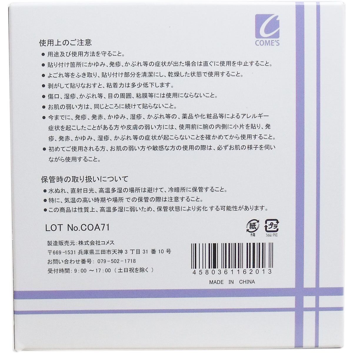 ・今までに発疹、発赤、かゆみ、湿疹、かぶれ等の、薬品や化粧品等によるアレルギー症状を起こしたことがある方や皮膚の弱い方には、使用前に腕の内側に小片を貼り、発疹、発赤、かゆみ、湿疹、かぶれ等の症状が起こらないことを確かめてから使用すること。