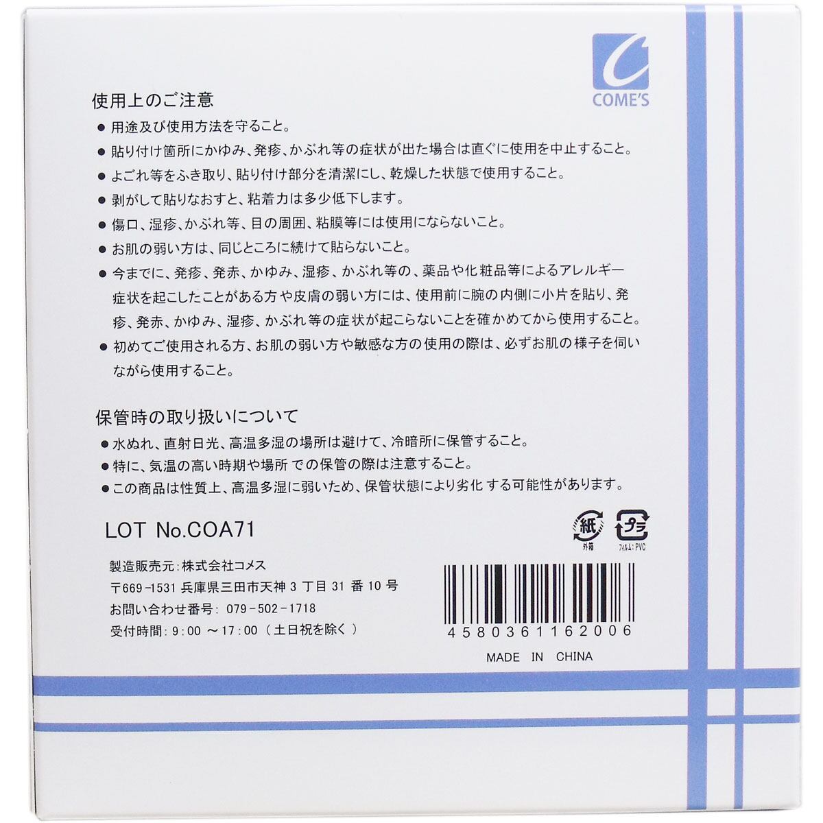 ・今までに発疹、発赤、かゆみ、湿疹、かぶれ等の、薬品や化粧品等によるアレルギー症状を起こしたことがある方や皮膚の弱い方には、使用前に腕の内側に小片を貼り、発疹、発赤、かゆみ、湿疹、かぶれ等の症状が起こらないことを確かめてから使用すること。