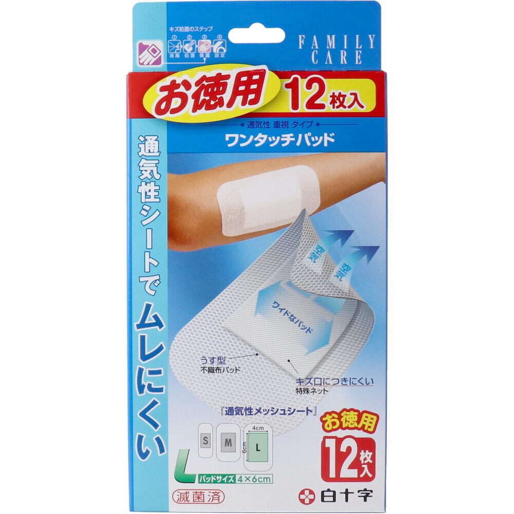 白十字 ファミリーケア ワンタッチパッド お徳用 Lサイズ 12枚入