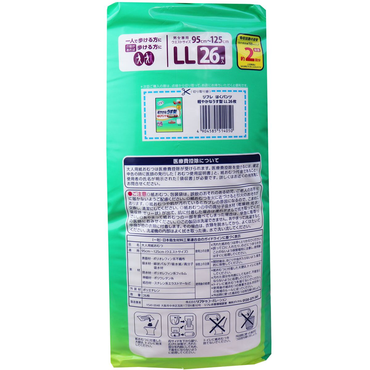 リフレ はくパンツ 軽やかなうす型 お得用パック LLサイズ 26枚入