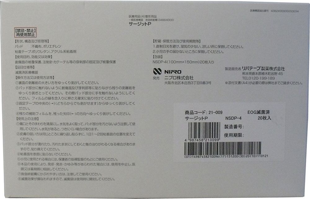 ニプロ 滅菌防水フィルムパッド付き サージットP 60×90mm 業務用50枚入